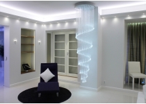 Závěsový lustr se skládá z 250 krystalů. Zdrojem světla jsou zabudované LED projektory. Světlo se skládá z "řetízků", v každém z nich je svazek vláken, na konci 1 řetízku je 1 krystal. Po instalaci je světlo plně funkční.
