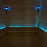 V tomto případě jsme využili nepoužívanou komoru o rozměrech 80x160 cm, a do ní jsme vestavěli malou saunovou oázu - atypickou saunu na míru osazenou luxusními doplňky jako Polární záře, a kombinovanými saunovými kamny, díky kterému si můžete užívat výhod suché i parní sauny.