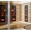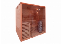 Moderní finská sauna Nordic o rozměrech 2000x1700x2100mm maximálně pro 4-5 osob je vyrobena z kvalitního dřeva kanadské borovice hemlock, zadní stěna je vyrobena z křemence. Výhodou je snadné a rychlé sestavení a velká prosklená část, která působí vzdušně a elegantně. Sauna se umístí do místnosti vždy tak, aby pro účel větrání měla odstup 30-50 mm od nejbližší stěny. Není určena pro komerční a zátěžové provozy. V horní části sauny, kde už se vytváří vyšší teplota, je v panelech od výšky 1100mm a v celém stropním panelu minerální vata.