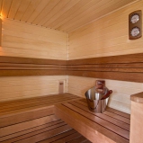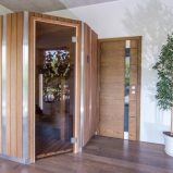Tyto širší palubky jsou nyní poptávanou, moderní variantou obkladů. Někdy mají označení "rustikal". Zákazník měl k dispozici prostory domácí posilovny a saunou ji rozšířil na malé wellness. Naše firma dodává různé atypické a vestavěné sauny na míru, které mají třeba šikmé stěny (stropy), prosklení apod. Takové sauny vyrábíme maximálně přizpůsobené danému prostoru. Vestavěné sauny vyrábíme do předem připraveného (třeba jenom vyzděného) prostoru.